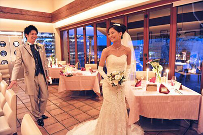 ランチタイムはもちろんディナータイムでのウェディングを承っています。